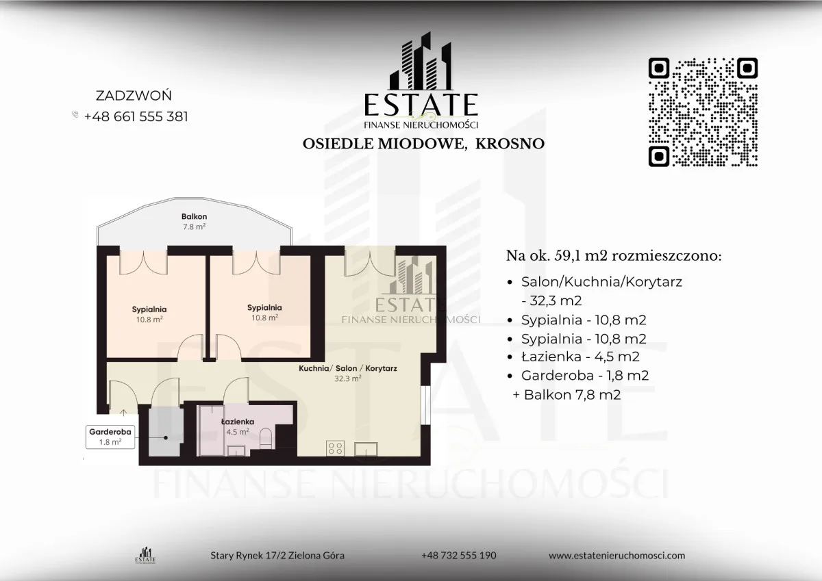ESTATE Nieruchomości oferuje na sprzedaż przestronne 3-pokojowe mieszkanie o powierzchni użytkowej 59,10 m², zlokalizowane w miejscowości Krosno (osiedle Miodowe, okolice Mosiny). Mieszkanie jest gotowe do zamieszkania - wystarczy wejść i zamieszkać!CHARAKTERYSTYKA NIERUCHOMOŚCI: